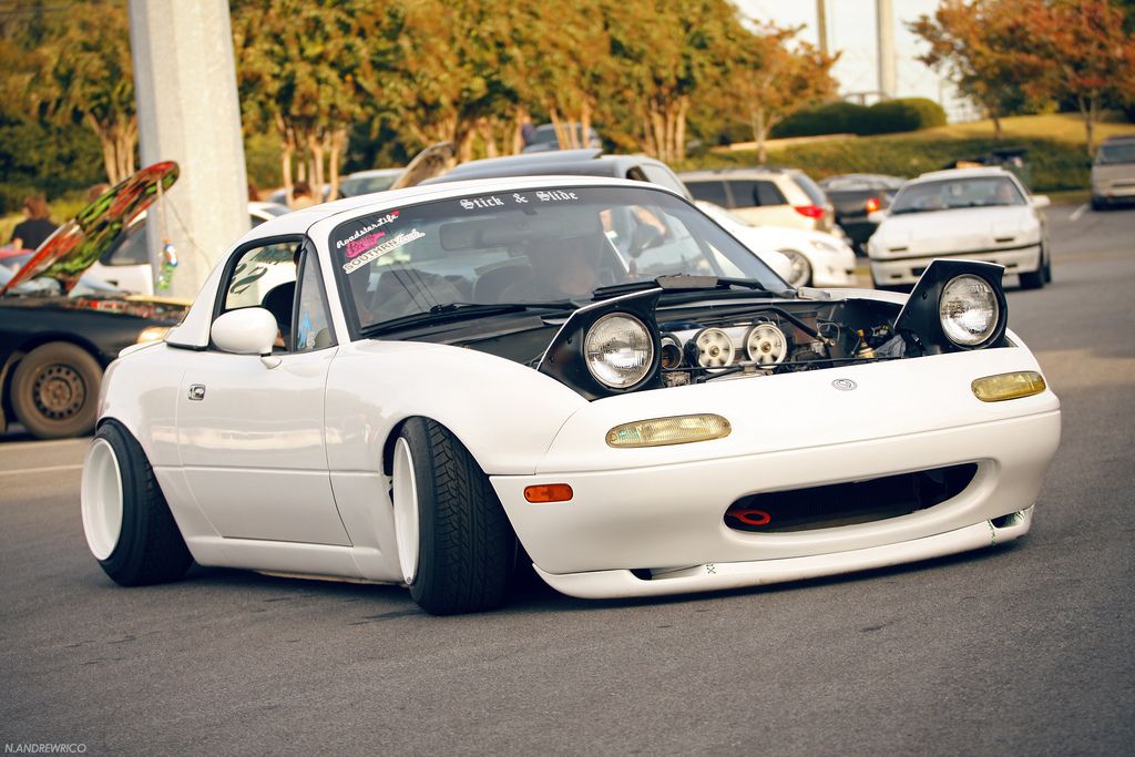 ΠΡΠ°ΡΠΈΠ²ΡΠ΅ Π»ΠΈΠ½ΠΈΠΈ ΠΊΡΠ·ΠΎΠ²Π° ΠΈ Π²ΡΠ΄Π΅Π»ΡΡΡΠΈΠ΅ΡΡ ΠΊΠΎΠ»Π΅ΡΠ½ΡΠ΅ Π°ΡΠΊΠΈ Π΄Π΅Π»Π°ΡΡ ΡΡΠΎΡ Π°Π²ΡΠΎΠΌΠΎΠ±ΠΈΠ»Ρ ΡΠ΅ΡΡΠΎΠ²ΡΠΊΠΈ ΠΊΡΠ°ΡΠΈΠ²ΡΠΌ. ΠΡ Π½Π΅ Π±ΡΠ΄Π΅ΠΌ ΠΈΡΠΏΠΎΠ»ΡΠ·ΠΎΠ²Π°ΡΡ ΠΊΠ»Π΅ΡΠ΅ ΠΎ Β«ΡΡΡΠ΅ΠΌΠΈΡΠ΅Π»ΡΠ½ΠΎΡΡΠΈ Π΄Π°ΠΆΠ΅ Π² ΡΡΠ°ΡΠΈΡΠ½ΠΎΠΌ ΠΏΠΎΠ»ΠΎΠΆΠ΅Π½ΠΈΠΈΒ», Π½ΠΎ Π²ΡΡ ΡΡΠΎ Π²ΠΏΠΎΠ»Π½Π΅ ΠΏΡΠΈΠΌΠ΅Π½ΠΈΠΌΠΎ. ΠΠ° ΡΡΠ΅Ρ ΠΊΡΠ°ΡΠΈΠ²ΡΡ ΠΊΡΠ°ΡΠ½ΡΡ ΠΏΠΎΠ»ΡΠΊΠΎΠ²ΡΠ΅ΠΉ ΠΈ ΡΡΠΈΠ»ΠΈΡΡΠΈΠΊΠΈ ΠΏΠΎΠ΄ ΡΠΏΠΎΡΡΠΈΠ²Π½ΡΠΉ Π°Π²ΡΠΎΠΌΠΎΠ±ΠΈΠ»Ρ, mazda Π² ΠΏΡΠΎΡΠΈΠ»Ρ Π½Π°ΠΏΠΎΠΌΠΈΠ½Π°Π΅Ρ Π΄ΡΡΠ³ΡΡ ΠΌΠ°ΡΠΈΠ½Ρ Ρ ΡΠ°ΠΊΠΎΠΉ ΠΊΠΎΠ½ΡΠ΅ΠΏΡΠΈΠ΅ΠΉ: Honda S2000. Π Π±ΡΠ΄ΡΡΠ΅ΠΌ, Π²ΠΎΠ·ΠΌΠΎΠΆΠ½ΠΎ, Π±ΡΠ΄ΡΡ ΡΡΡΠ°Π½ΠΎΠ²Π»Π΅Π½Ρ ΡΠΏΠΎΡΡΠΈΠ²Π½ΡΠ΅ ΡΠΈΠ΄Π΅Π½ΡΡ OMP Classic Π΄Π»Ρ Π±ΠΎΠ»Π΅Π΅ Π°ΡΡΠ΅Π½ΡΠΈΡΠ½ΠΎΠ³ΠΎ Π²ΠΈΠ΄Π° Π°Π²ΡΠΎΠΌΠΎΠ±ΠΈΠ»Ρ. ΠΠ°Π½ΠΈΠΆΠ΅Π½ΠΈΠ΅ ΡΠ°ΠΊΠΆΠ΅ ΠΏΠΎΡΠ»ΠΎ Π½Π° ΠΏΠΎΠ»ΡΠ·Ρ, ΠΈ Π΄ΠΈΡΠΊΠΈ Rays Gramlights 57Π‘ 17Γ8,5 ET30 Π²ΠΏΠΈΡΠ°Π»ΠΈΡΡ Π² Π°ΡΠΊΠΈ ΡΠ°ΠΊΠΈΠΌ ΠΎΠ±ΡΠ°Π·ΠΎΠΌ, Π±ΡΠ΄ΡΠΎ ΡΠ°ΠΊ ΠΈ Π±ΡΠ»ΠΎ ΠΊΠΎΠ³Π΄Π°-ΡΠΎ Π·Π°Π΄ΡΠΌΠ°Π½ΠΎ Π² ΠΈΠ½ΠΆΠ΅Π½Π΅ΡΠ½ΠΎΠΌ Π±ΡΡΠΎ Mazda. ΠΠΏΡΠΎΡΠ΅ΠΌ, ΠΠΈΠΊΠΎΠ»Π°ΠΉ Π΄ΠΎΠΏΡΡΠΊΠ°Π΅Ρ Π²ΠΎΠ·ΠΌΠΎΠΆΠ½ΡΠΉ ΠΏΠ΅ΡΠ΅Ρ ΠΎΠ΄ Π½Π° 16 Π΄ΠΈΠ°ΠΌΠ΅ΡΡ Π² ΡΠ³ΠΎΠ΄Ρ ΡΠΏΠΎΡΡΠΈΠ²Π½ΡΠΌ ΠΊΠΎΡΠ½ΡΠΌ Π°Π²ΡΠΎΠΌΠΎΠ±ΠΈΠ»Ρ, ΠΏΠΎΠΊΠ° ΡΡΠΎΡ Π²ΠΎΠΏΡΠΎΡ ΠΎΡΠΊΡΡΡ.