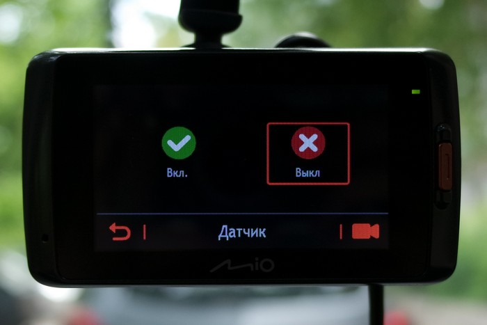 Видеорегистратор автоматически включается при внешнем воздействии на автомобиль.
