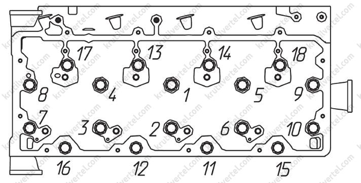 1. Прежде всего следует отметить, что несоблюдение порядка затяжки гаек головки блока (Рис. 6,7) приводит к неравномерному и недостаточному обжатию прокладки головки блока, что в свою очередь может вызвать её прогорание.