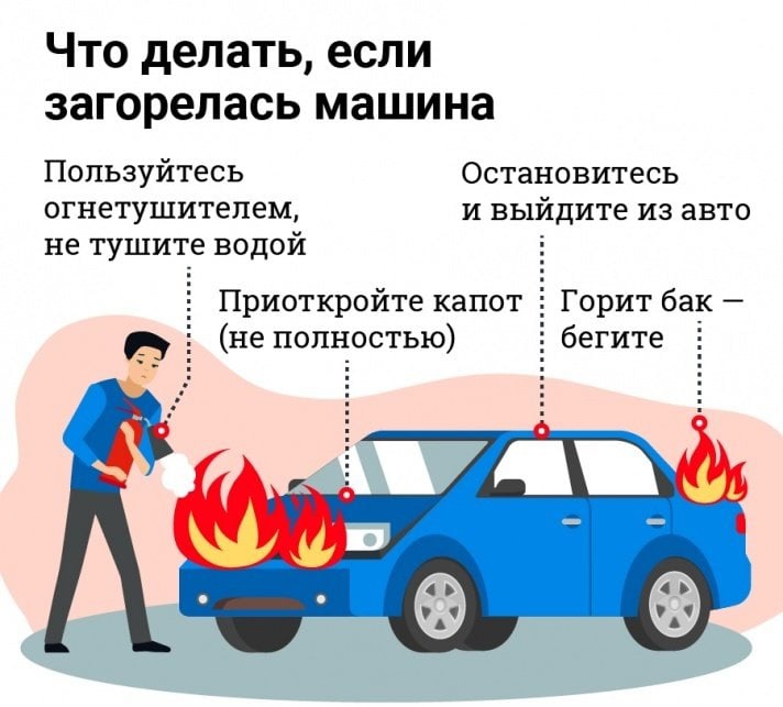 Помните, что возгорание в автомобиле может произойти не только в моторном отсеке.