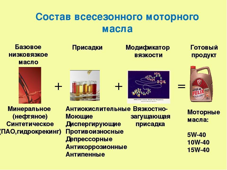 В зависимости регионов в которых эксплуатируется автомобиль, состав присадок может меняться. От различных компонентов масла зависит, сможет ли мотор функционировать на «смеси» минералки и синтетики.