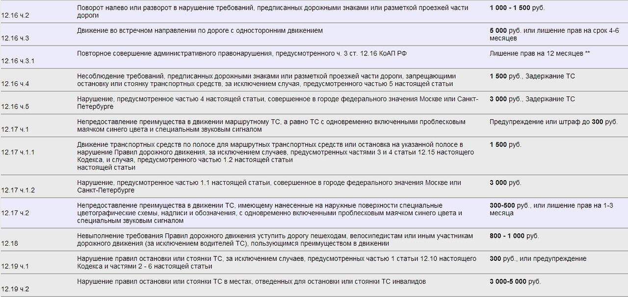 статья 12.14 КоАП РФ | нарушение правил маневрирования |