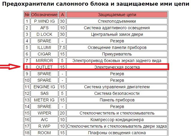 Предохранитель прикуривателя обычно обозначается как C-LIGHT, CIGARE, POWER OUTLET.