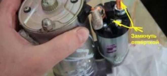 Подайте на стартер напряжение в обход управляющего реле или замкните отвёрткой две большие клеммы на втягивающем. Если он не крутится, необходимо проверять щёточный узел, обмотки якоря и статора на пробой или обрыв.