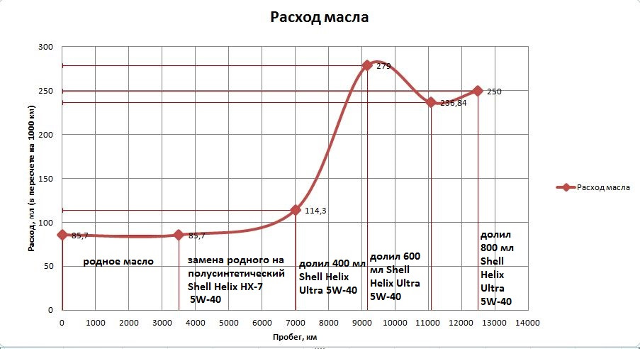 Расход масла на 1000 км пробега или 100 литров топлива