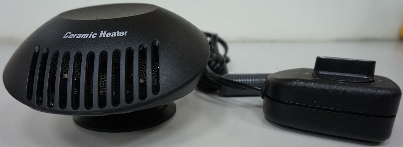 Это автомобильный обогреватель на 12 В, который легко подключается к розетке. Он также оснащен функцией автоматического отключения и кнопкой сброса.