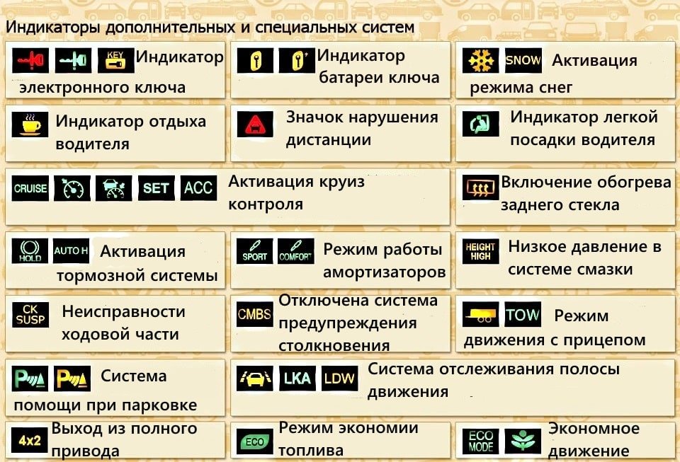 Как показывает практика, расшифровка значков на приборной панели в ряде случаев позволяет своевременно определить, что машина нуждается в обслуживании или возникли неисправности.