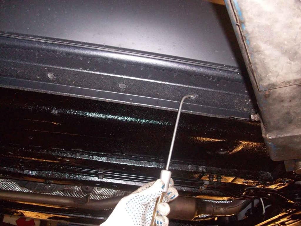 Антикоррозийная обработка порогов автомобиля с использованием мастики