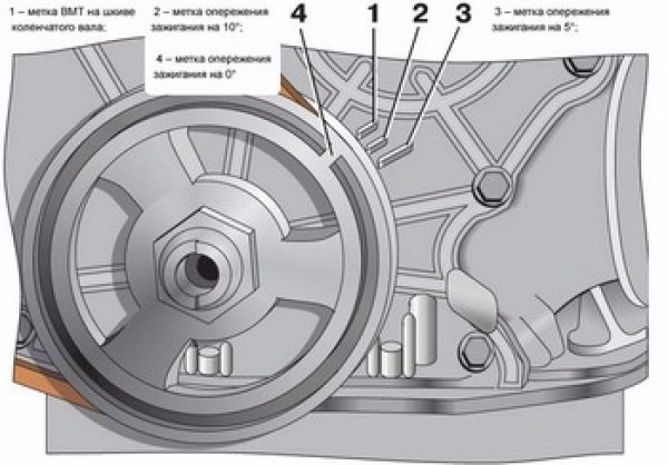 В этот момент измеряется и корректируется начальный угол опережения – порядка 2-7 градусов. Четкая цифра есть в паспорте авто.