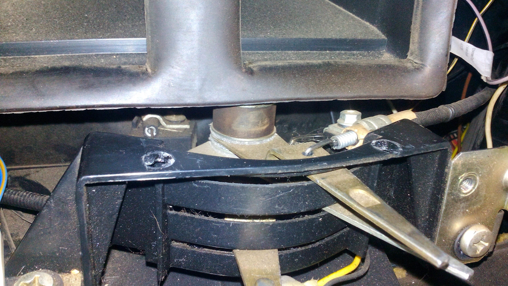 - Откручиваем 2 болта крепления кронштейна управления отопителем и ослабляем винты, которые удерживают скобы крепления тяг.
