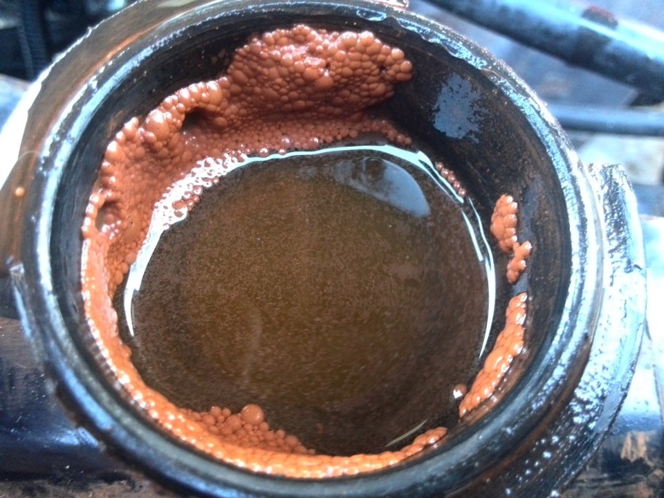 Низкое качество жидкости проявляется во внешнем виде итогового «месива» буро-коричневого цвета.