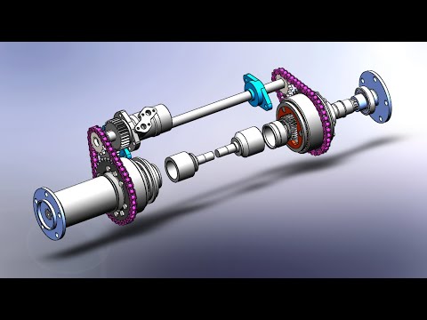 Водило связано с ведущей полуосью конечной передачи, и на его осях свободно сидят шестерни-сателлиты, равномерно расположенные по окружности (их может быть два, как показано на рисунке, или больше). Сателлиты находятся в постоянном зацеплении с солнечной шестерней и коронной шестерней, имеющей зубья внутреннего зацепления и свободно расположенной на полуоси. Полуось, с которой связано водило, имеет тормоз, а коронная шестерня — тормоз. Когда тормоза коронных шестерен обоих механизмов затянуты, шестерни не вращаются и сателлиты перекатываются по ним с одинаковой угловой скоростью, поэтому звездочки также вращаются с одной и той же угловой скоростью — трактор движется прямолинейно.