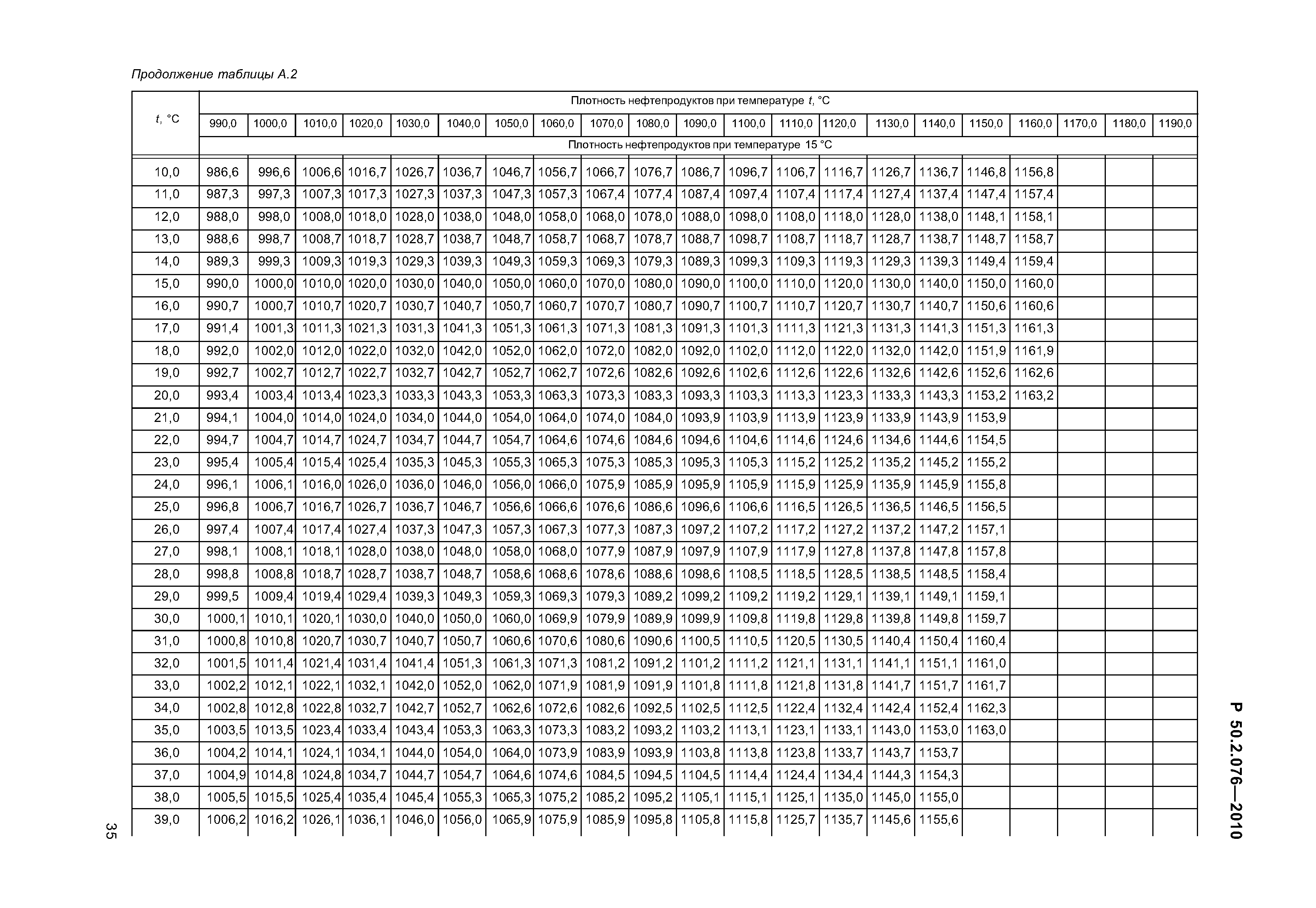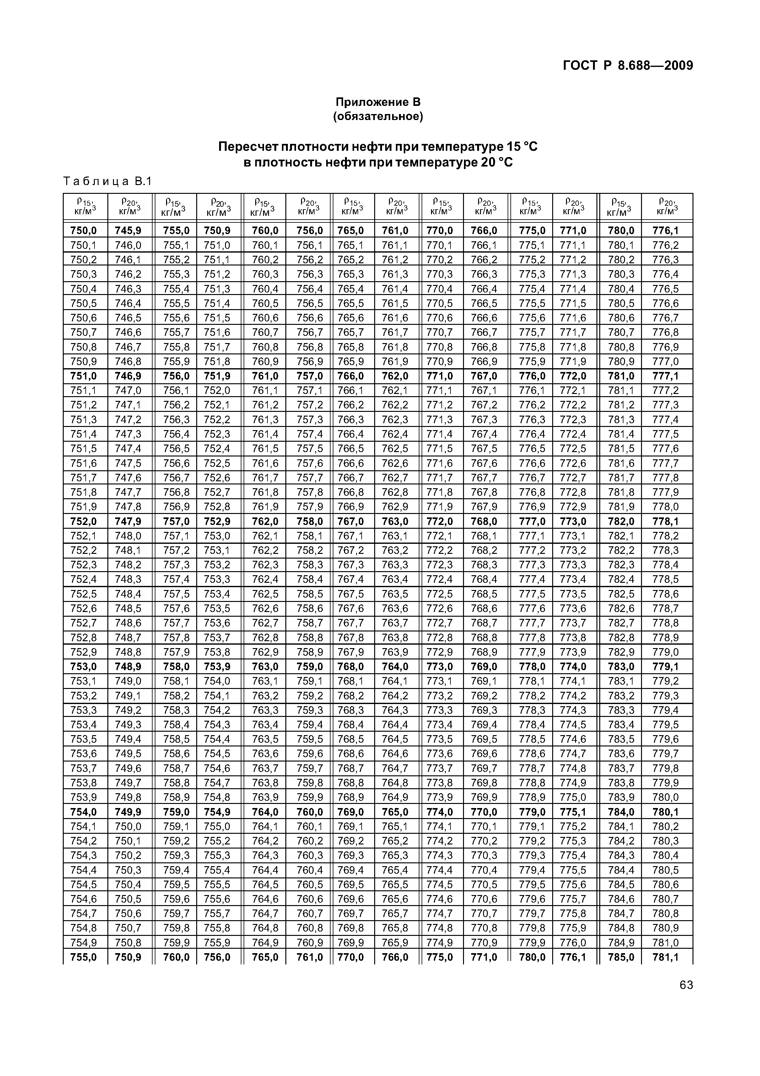 Находим табличное значение (в г/см3) горючего при 20 °С.