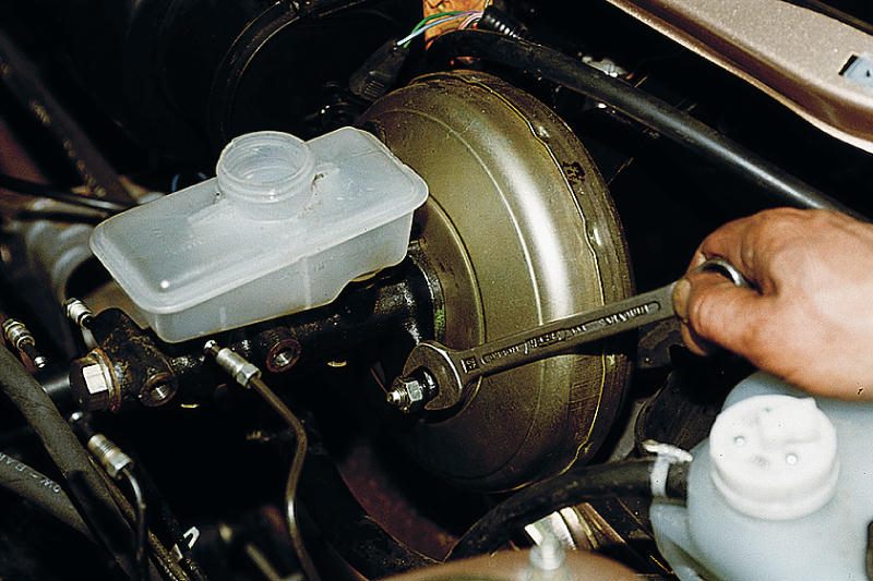 При выходе из строя уплотнений главного тормозного цилиндра тормозная жидкость может постепенно уходить по штоку во внутрь корпуса вакуумного усилителя.