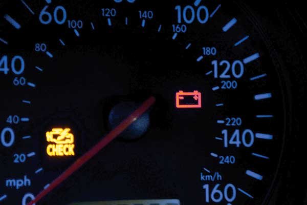 После запуска мотора контролька лампочки аккумулятора должна гаснуть, указывая на то, что батарея заряжается.