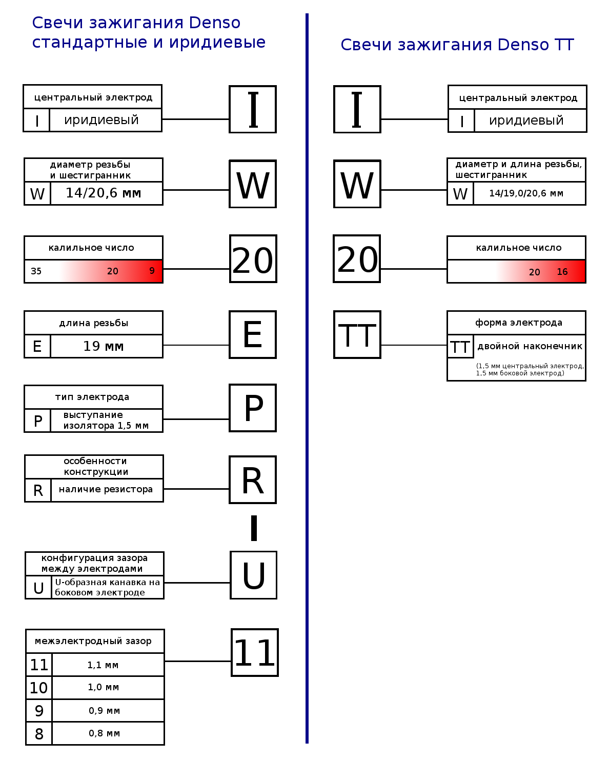 Денсо Калорийность свечей зажигания Iridium Performance ИХ30: 20