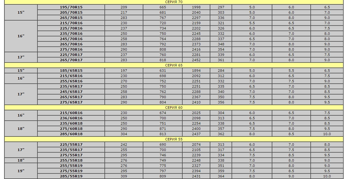В нашем примере получаем 195/65 R15. Тут важно знать, что все автомобили рассчитаны на установку цепей противоскольжения размером не менее 12 мм. Ведь в некоторых европейских странах проезд по горным дорогам без цепей запрещен, и ни один уважающий себя производитель не сделает автомобиль таким, чтобы его нельзя было эксплуатировать в горах Франции или Швейцарии. Поэтому увеличение ширины профиля шины допустимо в большинстве случаев на величину до 24 мм. При этом на ходу автомобиль станет немного мягче, а более широкие шины улучшат тормозные характеристики.