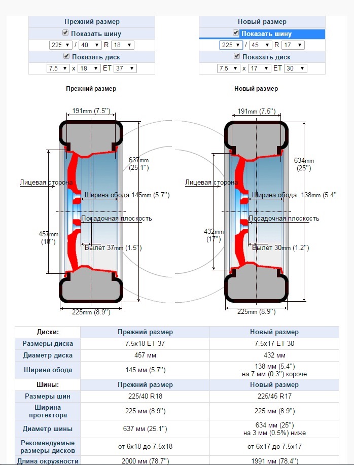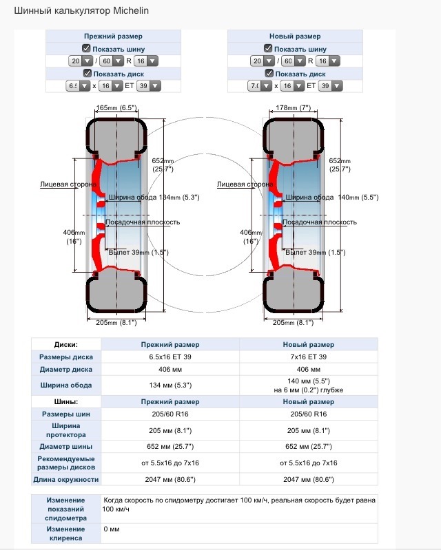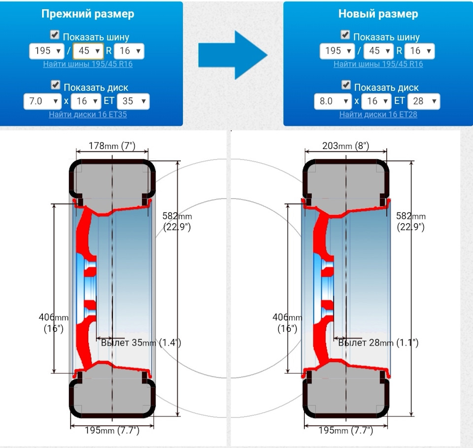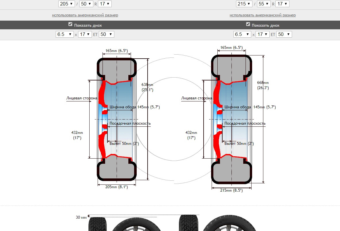 Шинный калькулятор онлайн, сравнение шин и дисков