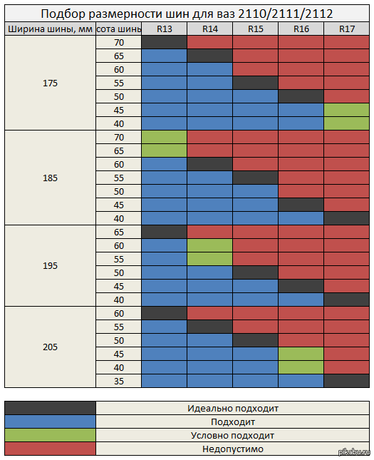 Колесный диск оставляем прежним, а процентное отношение высоты профиля шины к ширине увеличиваем до 70. В нашем примере получаем 185/70 R15. Наружный диаметр колеса увеличивается на 20 мм, что вполне допустимо (помним про запас для установки цепей). Все было бы хорошо, но в нашем конкретном примере вмешивается тот фактор, что шины такой размерности выпускают, в основном, для коммерческого транспорта и они слишком жесткие и дорогие для установки на легковушку.