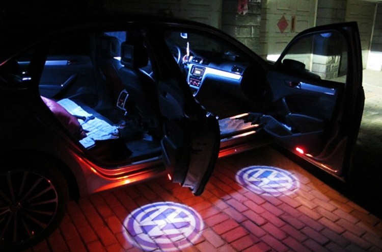 Речь идёт о лазерной подсветке, которая у нас появилась сравнительно недавно, постепенно завоёвывая сердца автолюбителей и мастеров чип/тюнинга. К примеру, при открытии двери, после установки лазерной подсветки в её нижней части, на земле, перед дверью, формируется выбранный вами логотип. Вот как это выглядит на фото.