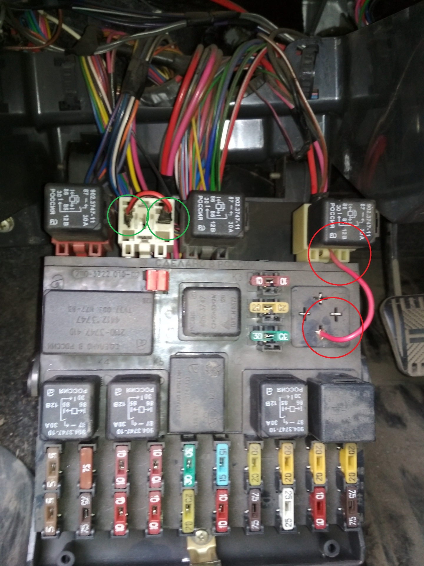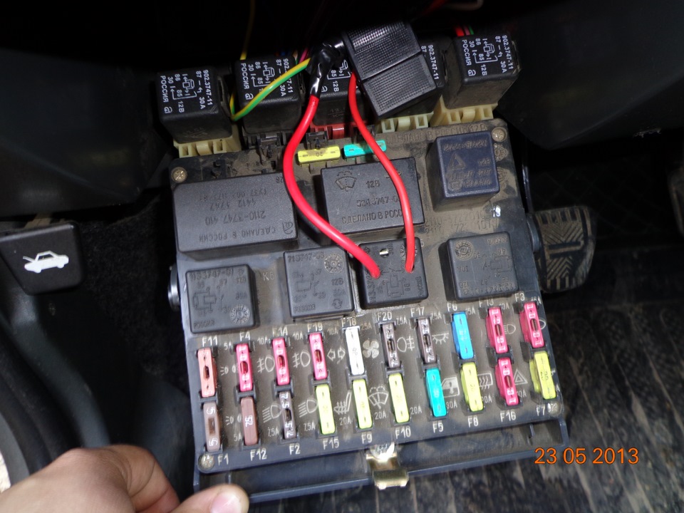 F1 (5 A) — лампы освещения госномера, освещение приборной панели, лампа включения габаритов на панели, лампа багажника, левые габаритные огни.