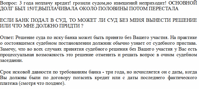 Банк не может взять и «забыть» про задолженность – даже если будет принято решение о списании кредита (а это редкость), до этого будут начислены штрафные санкции и пени. Как минимум, это испортит кредитную историю. Если же клиент проявляет инициативу и заявляет об ухудшении финансового положения, это увеличивает доверие банка к нему и повышает шансы на удовлетворение просьбы об отсрочке платежей. Если дело дойдёт до суда, то это также сыграет в пользу заёмщика, если впоследствии он попросит о рассрочке исполнения судебного решения. - Не пропадайте из поля зрения – не меняйте телефон, адрес, электронную почту, которые предоставляли банку. Если кредитная организация не сможет связаться с вами в то время, когда вы задерживаете платёж, это автоматически сделает вас неблагонадёжным заёмщиком со всеми вытекающими последствиями. Другими словами, решение не платить кредит может дорого обойтись в будущем, особенно если вы поведёте себя в этой ситуации неправильно.