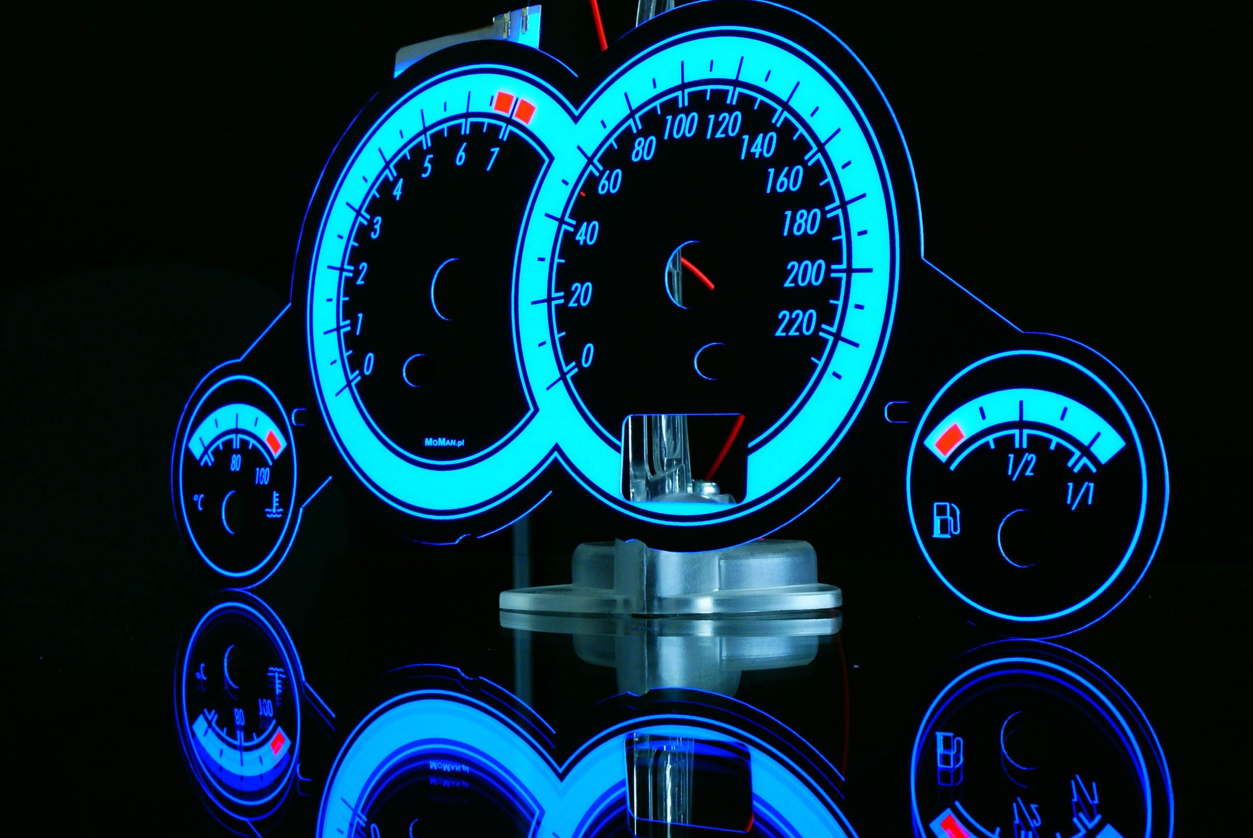 Шкалы приборов — подсветить голубым цветом.