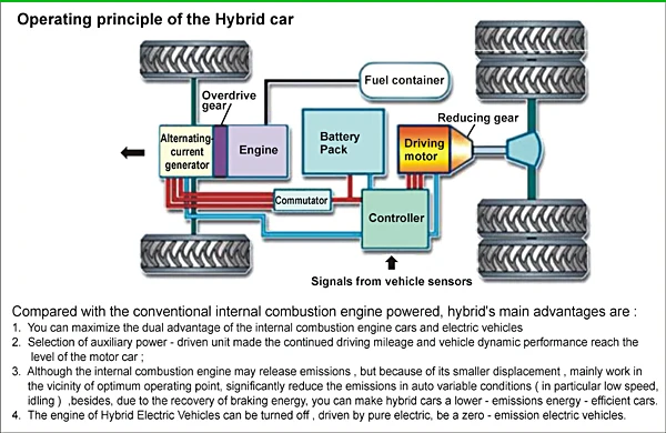 В то время как обычный автомобиль, работающий на газовом топливе, приводится в действие двигателем внутреннего сгорания, а электромобиль приводится в действие аккумуляторным электродвигателем, гибридный автомобиль приводится в действие комбинацией обоих.Он использует либо двигатель внутреннего сгорания, либо работает вместе с электродвигателем, чтобы свести к минимуму расход топлива, сохранить энергию и даже рекуперировать энергию в некоторых конкретных ситуациях вождения (например, запуск, движение, торможение, остановка и т. д.).