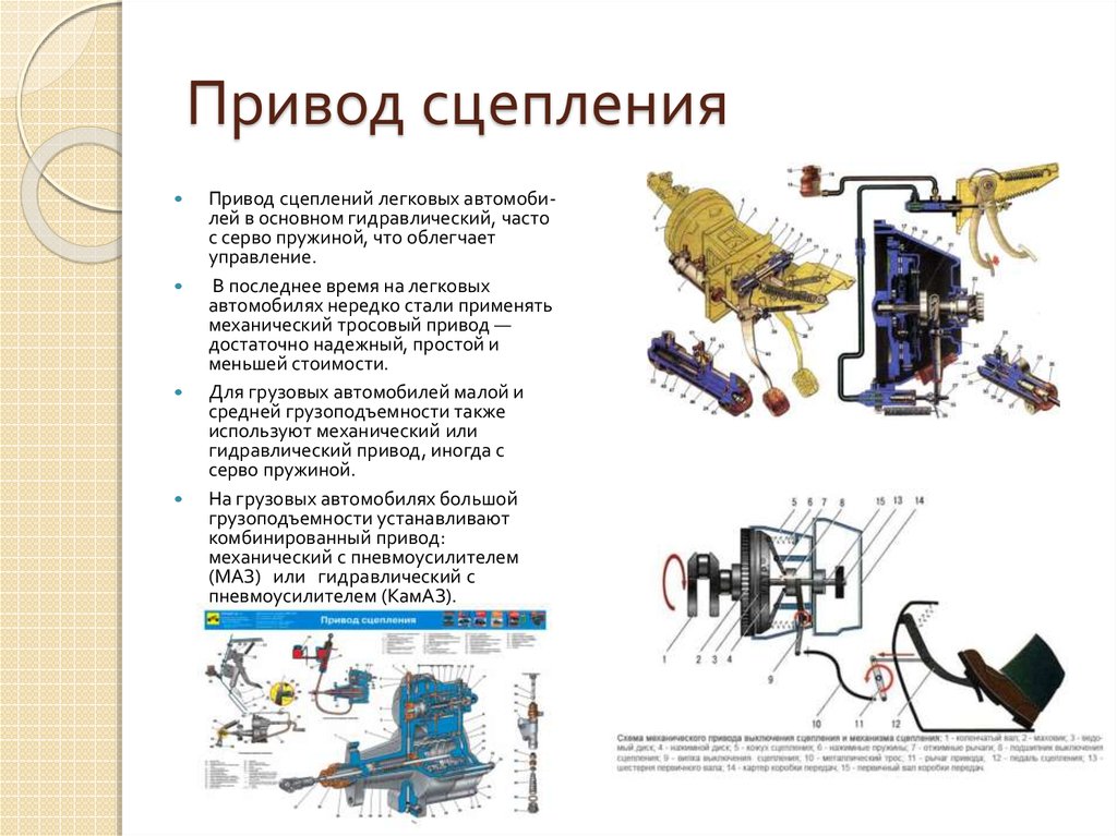 Сцепление служит для отсоединения двигателя от коробки передач при переключении передач, а также для плавного их соединения при трогании автомобиля с места и после включения передачи.