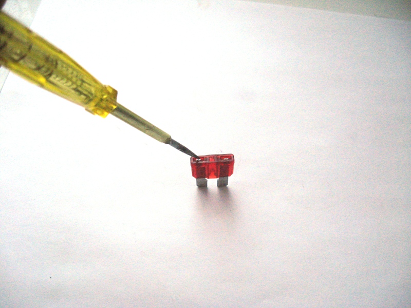 Если у вас нет лампочки, то здесь индикатором целостности предохранителя будет служить ваш язык.