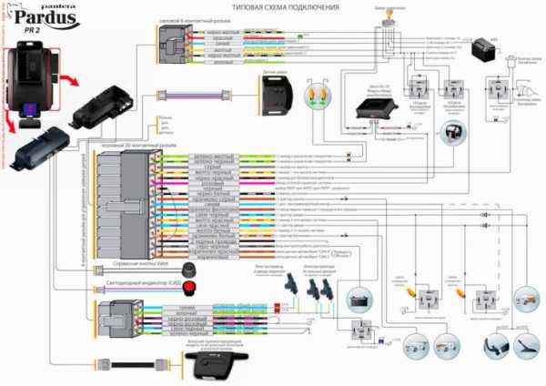 Фиолетово-желтый шнур, как сказано в инструкции, должен получать плюсовой потенциал в момент запуска «с ключа». Красно-белый шнур – это питание сигналки. А фиолетово-белый кабель тоже желательно подключить, и подключают его к тахометру.