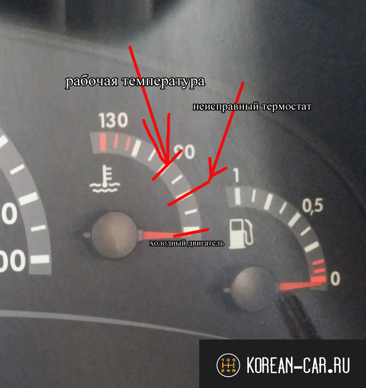 Второй грозит разрушением двигателя. В моем случае был недогрев, температура редко поднималась выше 70 градусов, то есть клапан был открыт и охлаждающая жидкость постоянно циркулировала через радиатор.