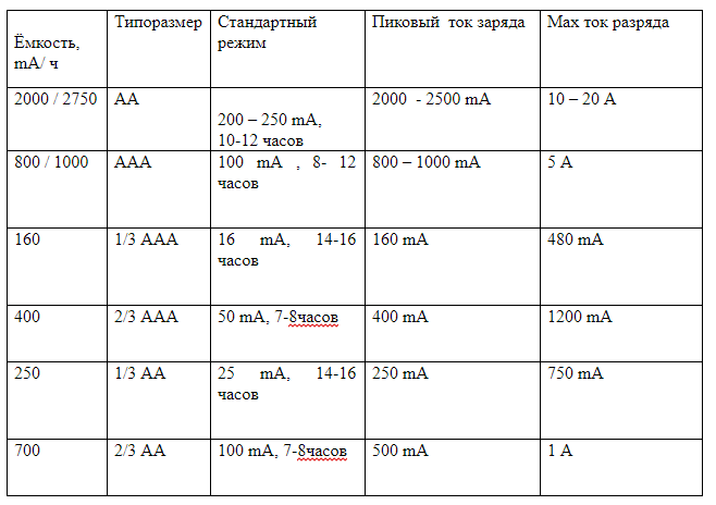 и NiMH аккумуляторы.