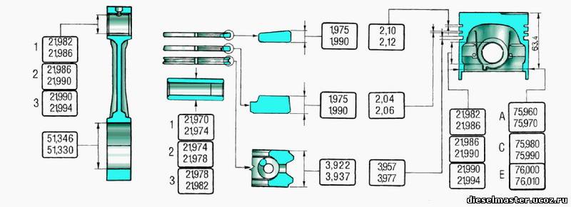 Кроме того, существует 2 основных ремонтных размера цилиндров, под них также производятся соответствующие шатунно-поршневые группы. В результате, зайдя в магазин автомобильных запчастей, можно обнаружить 15 одинаковых с виду поршней, имеющих различный диаметр и предназначенных для одного и того же силового агрегата. Разобраться в этом многообразии довольно сложно, но при наличии знаний и специальных инструментов ошибиться в выборе невозможно.