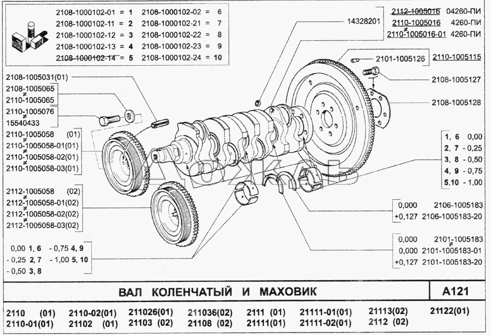В правой его половине отлит номер: 2103. Слева вверху имеется номер: 03. Эта марка эксплуатируется на следующих моторах: 2103, 21043, 21053, 21061, 2107