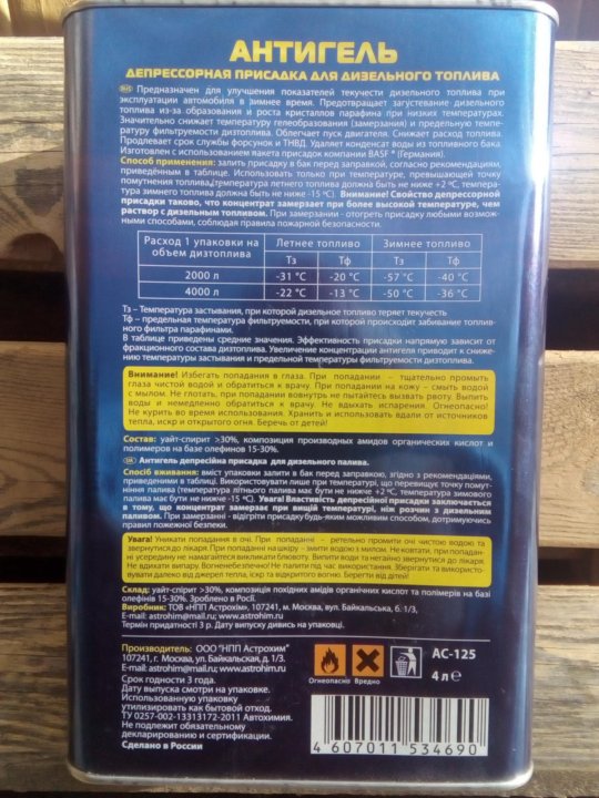 Надо учитывать, что антигель – не размораживатель дизеля, хотя по химической формуле эти составы похожи.