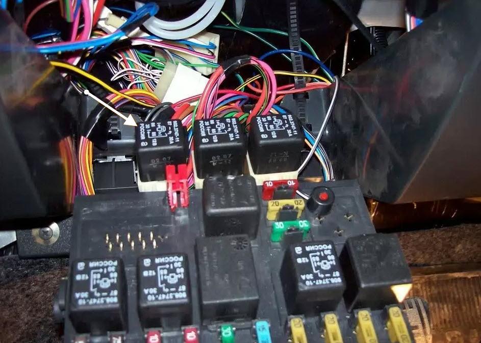 Если с приводом все в порядке, то дальше ехать в салон т.к. именно здесь реле. Более точное его расположение – еще один монтажный блок с левой стороны относительно пространства для ног переднего пассажира.