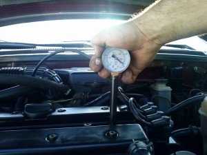 - Выполните проверку в каждом цилиндре мотора. Полученные показатели необходимо сверить с теми, которые указал производитель транспортного средства. Обычно они отмечаются в сервисной книжке по эксплуатации.