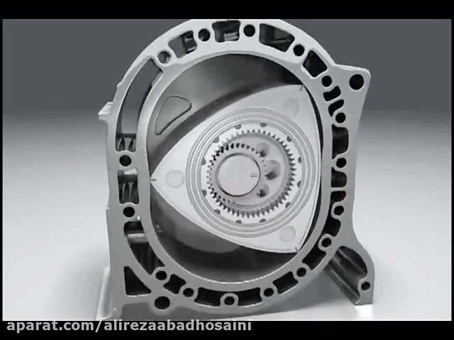 Ротор вращается вокруг эксцентрикового вала внутри корпуса. Воздух сжимается вместе с топливом, затем вводится искра , и, наконец, выхлоп выходит через выпускное отверстие.