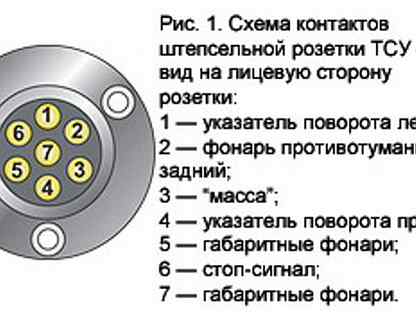 Обозначение выводов на вилке — розетке фаркопа для подключения прицепа