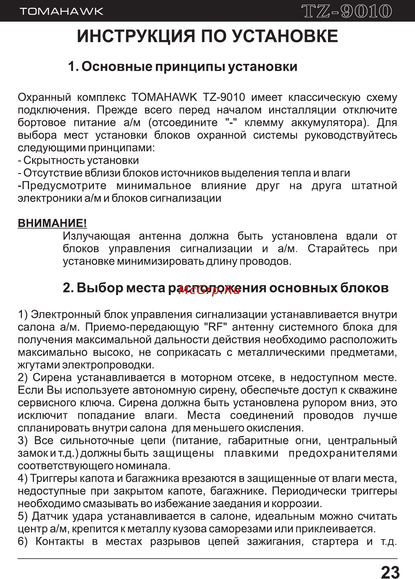 Инструкция по эксплуатации tz 9010. Инструкция по эксплуатации. Определение модели Tomahawk