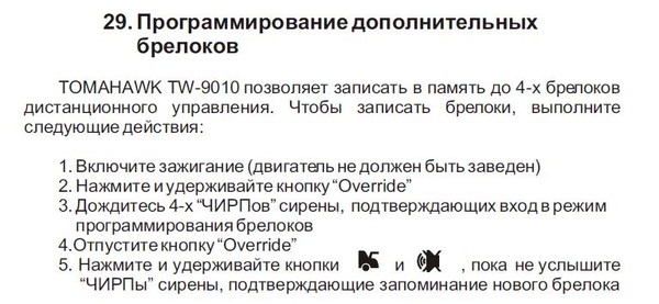 Обозначим манипуляции, направленные на то, как запрограммировать брелок. «Томагавк 9010» — система, в которой это можно сделать следующим образом: