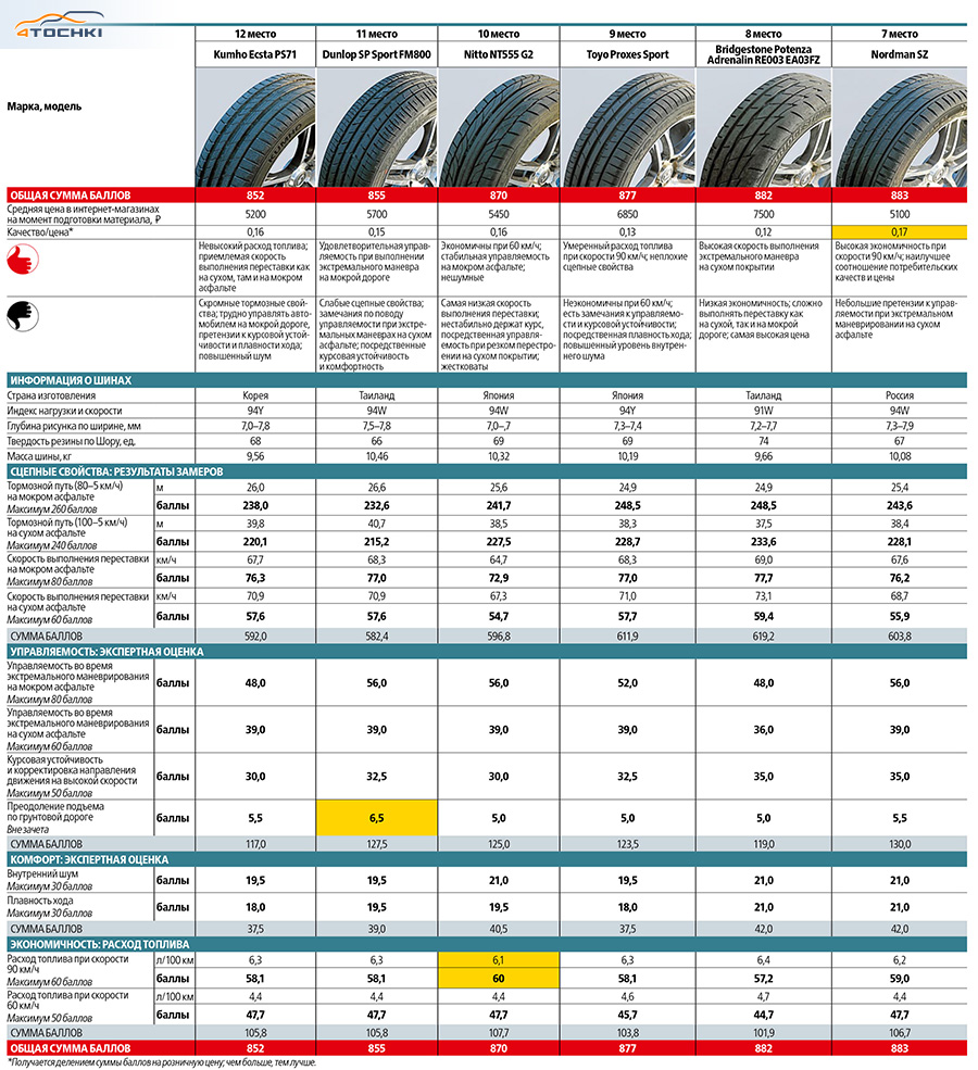 Составляя сегодняшний рейтинг лучших тихих летних шин, мы опирались не только на абсолютные величины шумности конкретной резины, но и на некое усредненное соотношение «шумность/качество». Если взять покрышку с мелкими и неглубокими канавками протектора, то она, конечно, будет тихой, зато после дождя ухудшение торможения и управляемости будет критичнее удобства для ушей.