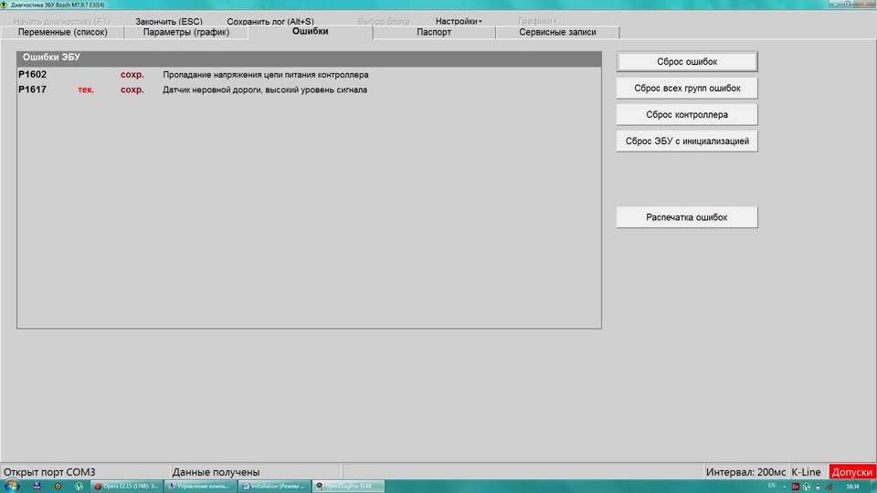 - Еще раз нажмите на эту кнопку. На экранчике начнут появляться комбинации неисправностей. Если необходимо, то здесь же вы можете сбросить данные об ошибках. Чтобы сделать это, нажмите и удерживайте в этом состоянии кнопку сброса километража дневного пробега около трех секунд.