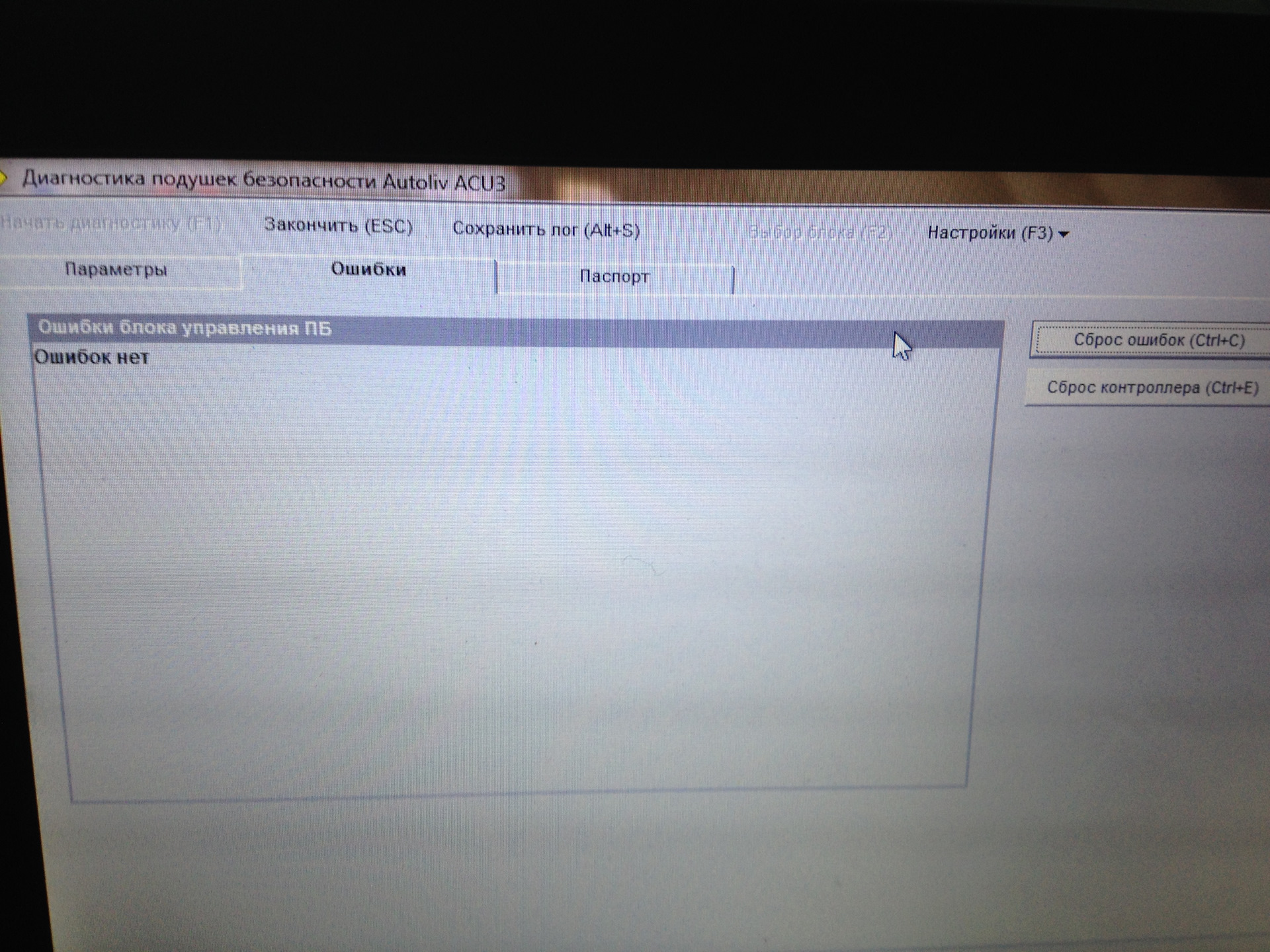 | Е (EEPROM) | Зафиксированы неисправности в пакете данных. |