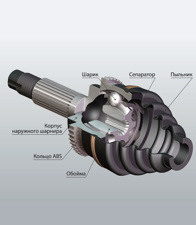 - При смене угла между полуосями подшипники передвигаются по внутренним канавкам и передают крутящий момент.