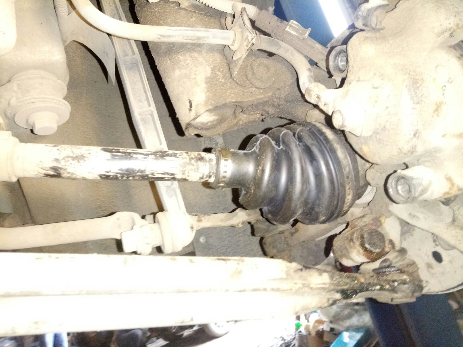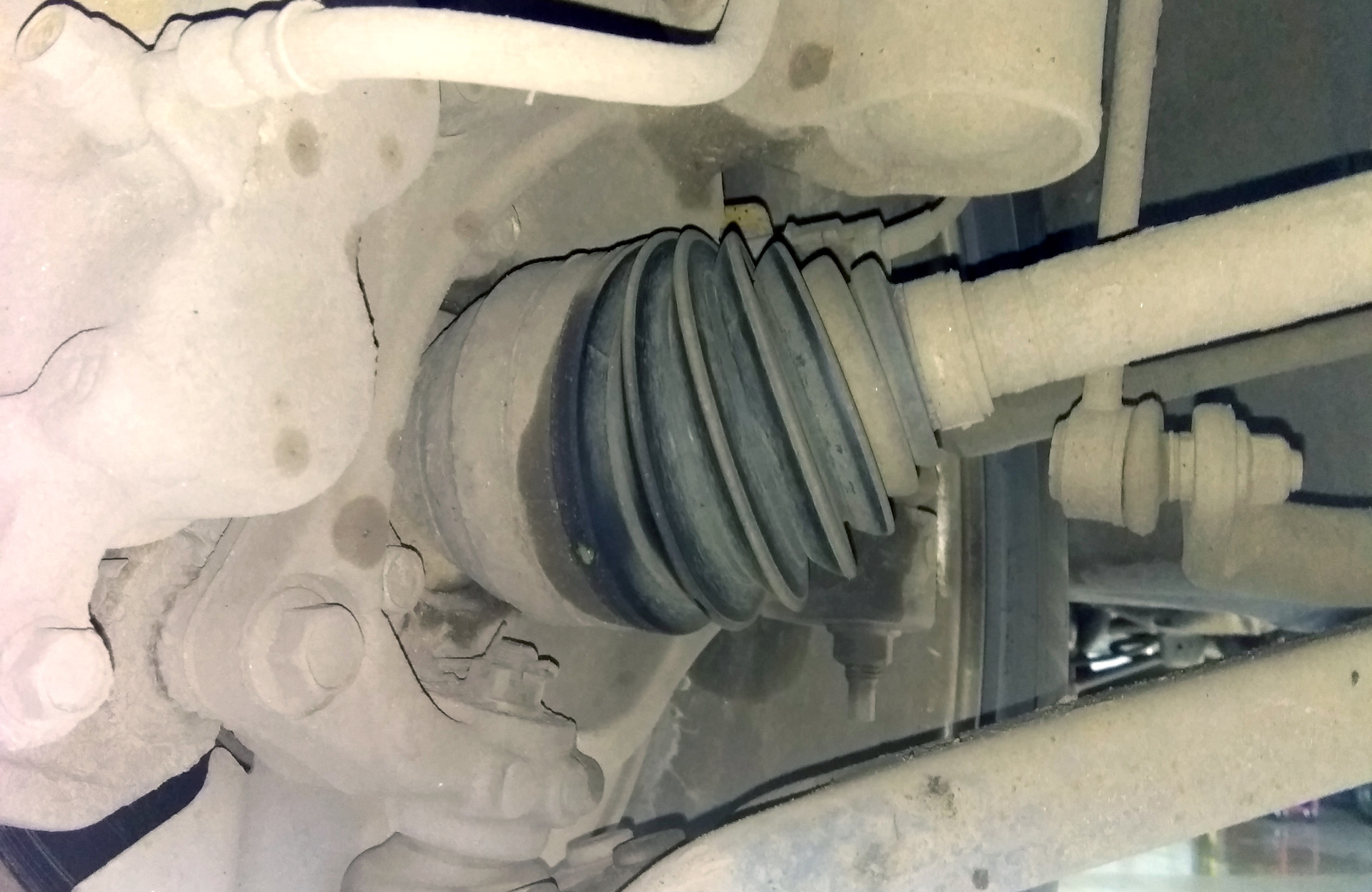 Еще одним признаком неисправности полуосей CV является смазка на внутреннем крае шины или вдоль днища автомобиля.Обычно это вызвано утечкой смазки из порванного пыльника, которая разбрасывается во время вращения оси. Протекающий пыльник в конечном итоге приведет к выходу из строя ШРУСа, поскольку грязь и мусор попадут в пыльник и повредят шарнир.