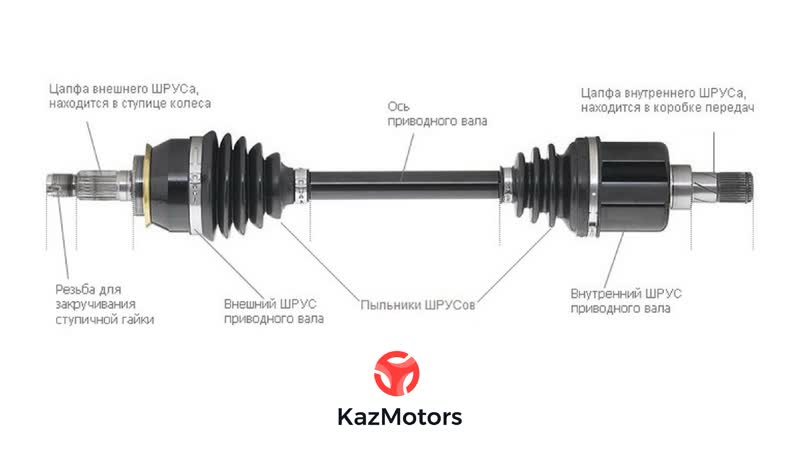 Все переднеприводные автомобили, а также некоторые заднеприводные и полноприводные автомобили оснащены шарнирами CV (постоянной скорости). На переднеприводных автомобилях внутренний шарнир соединен с трансмиссией, а внешний шарнир соединен со ступицей колеса. Между двумя шарнирами и соединением двух шарниров вместе находится полуось или ведущий вал, также известный как полуоси.Есть правый и левый приводные валы с внутренними и внешними ШРУСами. Эти узлы приводного вала / ШРУС передают крутящий момент от трансмиссии на колеса, тем самым поворачивая колеса. ШРУСы позволяют приводным валам плавно перемещаться вверх и вниз вместе с подвеской при вращении с постоянной скоростью.