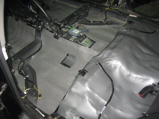 Установка матов Dynamat очень проста; вам нужно снять напольный коврик, а затем приложить звукопоглощающий коврик к полу.