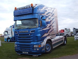 Седельные тягачи Scania очень популярны в качестве демонстрационных грузовиков с торпедоносной передней частью или без нее.